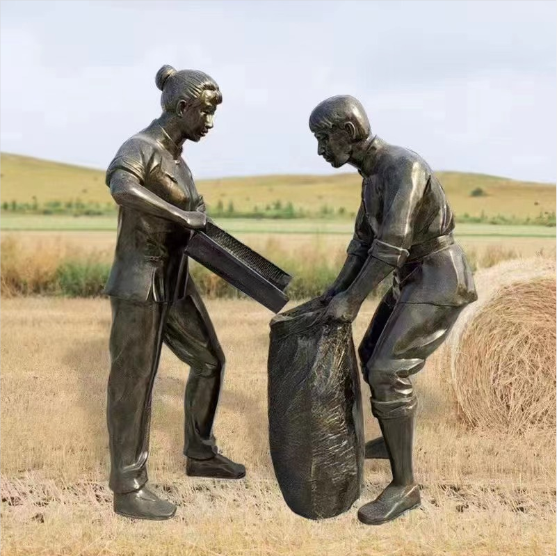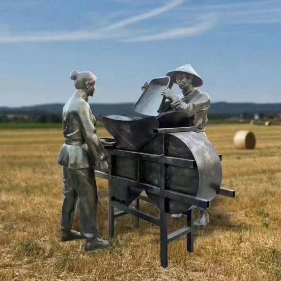 鑄銅人物雕塑、農耕文化、收糧食