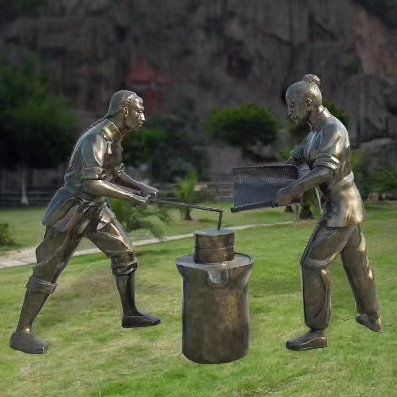鑄銅人物雕塑、農耕文化、收糧食雕塑