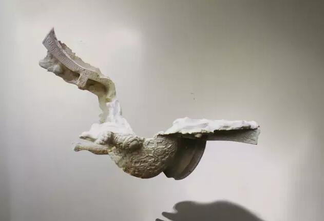 以此體現作者對社會發展過程中變遷和異化諸問題的認識與理解。竇付坤以不變應萬變,利用石灰巖多孔洞的特性,做了一系列殘缺的汽車、錢幣、書籍等作品,他讓日常物有了歷史的痕跡,如出土文物般斑駁,從這些“文物”中可以回望過去、反觀當下、映射未來。