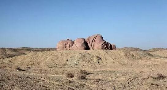 董書兵的《大地之子》,一座長15米、寬9米、高4.3米的巨型“嬰兒”雕塑,趴伏在廣袤的戈壁灘上,以地為席,把天作幕,酣然入夢。